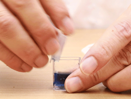 在含有高浓度甲醛的福尔马林溶液中加入显色剂,让甲醛显色。