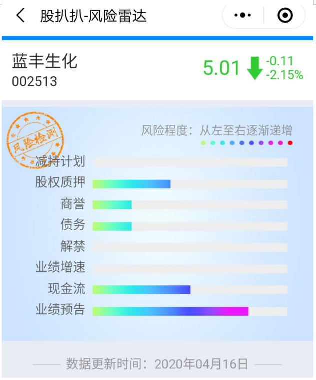 从股扒扒提示,我们可以看到,蓝丰生化还存在一些风险点,比如业绩风险。