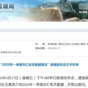 4月17日,国家外汇局公布2020年一季度外汇收支数据。