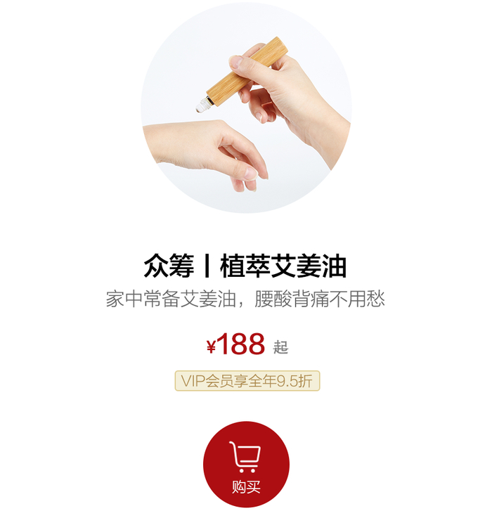 支持188元,可获得植萃艾姜油(滚滚瓶)1瓶,价值268元。