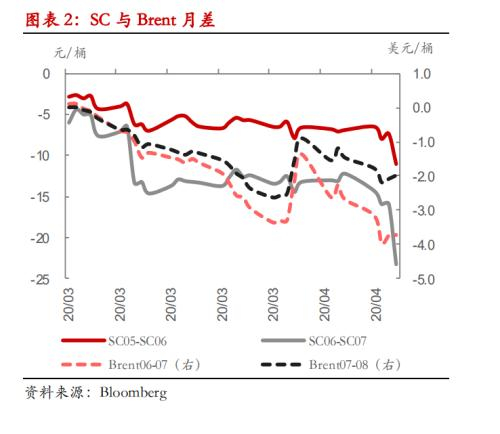 SC仓储费的调整更重要的影响在于驱动内外价差回归,从3月下旬以来,SC近端价格对Brent出现明显的溢价。仓储费用上升会增加油库作为期货交割仓库的积极性,有效库容增加后,SC溢价形成丰厚的交割利润会吸引更多的卖交割参与其中。SC远期结构相对Brent平坦也是不合理溢价持续的原因之一。供需矛盾急剧恶化导致海外原油期货因此形成深度Contango结构,在这样的远期结构下,多头展期面临巨大的展期成本,而SC受限于无风险套利边界,月差相对抗跌,展期成本远远低于外盘,使得SC成为配置多头相对低成本的选择。此次SC仓储费的调整将驱动近端月差扩大,SC相对“便宜”的多头展期成本也将明显上升,有利于平抑SC对Brent不合理的溢价。