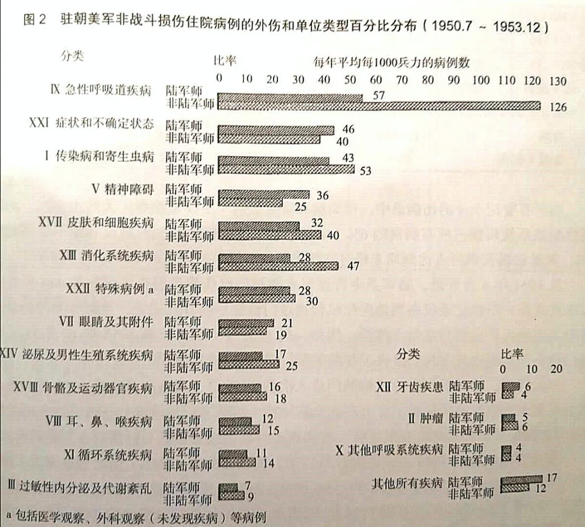 美国陆军非战斗损伤的一线战斗人员(即8个步兵师和2个独立团战斗队)约为36200名,其中排第一的就是前文提到的冻伤。