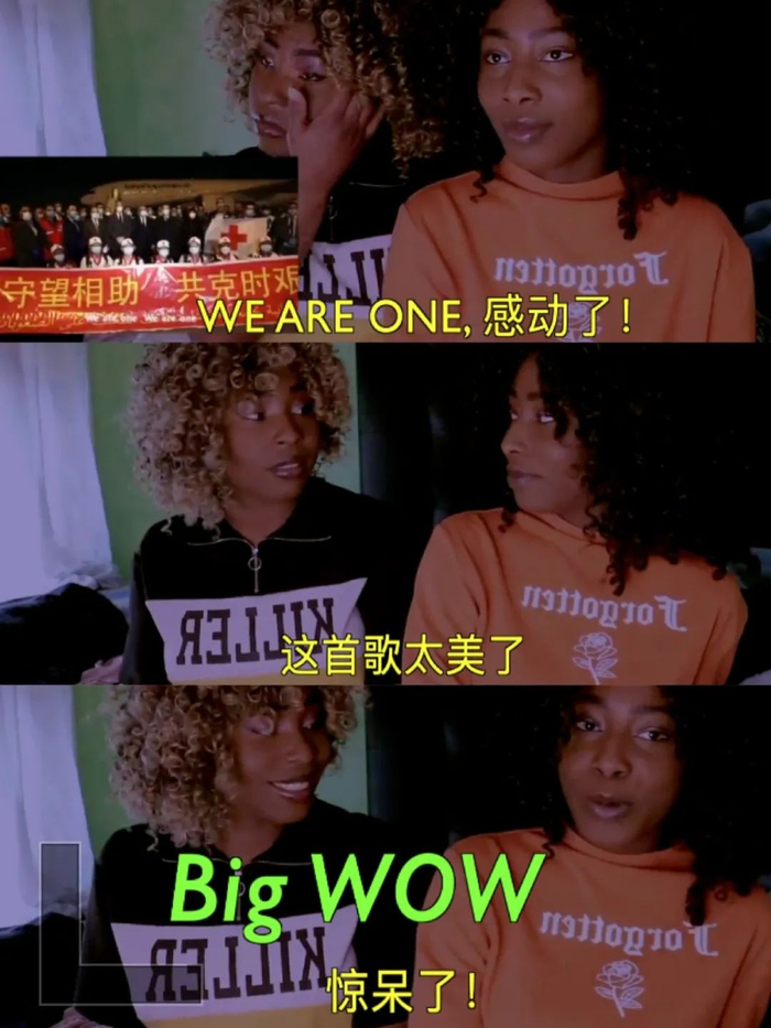 MV以其强烈艺术感染力引起全球共鸣。西班牙非裔姐妹AfroSys很感动,还跟着唱了起来。她们认为音乐不分国界,这首歌“把人们团结到一起”。