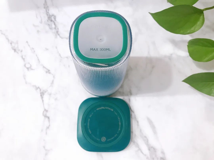 双击杯盖上的启动按钮,摇一摇就能榨汁。