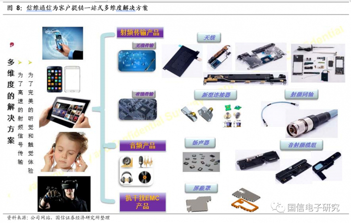 公司从过去提供移动终端天线、射频等领域的设计、测试和解决方案厂商,逐步成长成为世界领先的零部件解决方案提供商,为客户提供移动终端天线及相关模组、音射频模组、良好电磁兼容性能的连接器的研发、生产、销售与服务为一体的一站式创新技术解决方案。