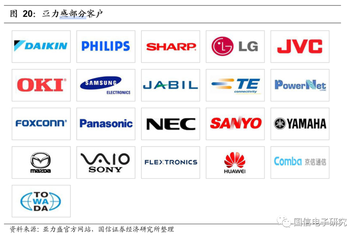12年以前公司主要以步步高、OPPO等国内品牌客户为主,12年收购莱尔德之后,获得进入A客户的平台。结合在H客户、S客户等全球一流品牌客户基础,利用莱尔德技术和人才围绕射频领域器件积极布局,以天线、屏蔽件、无线充电模组等产品为主形成泛射频整体方案的提供商。收购亚力盛完成射频技术与连接器结合,打造成为一个优质的平台型公司。