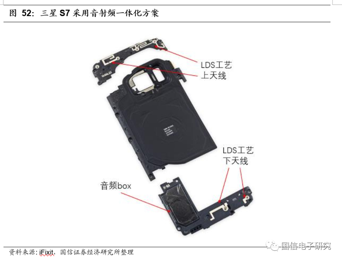 从集成度角度考虑,公司天线产品对手机集成度提高有重要作用,若公司在天线产品中集成其他标准化模块,也能掌握该模块的话语权,如公司的音射频一体化模块设计,在手机内部空间日趋紧张的今天,更高的集成度即意味着更多的客户,如三星S7即采用音射频一体化方案。