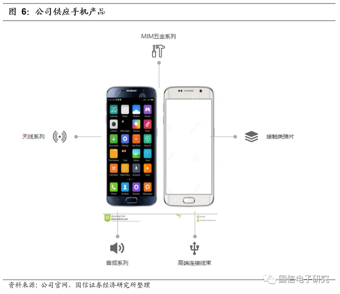 卡位产业链核心位置,向上切入更加容易。从产业链角度,公司主要产品如天线、无线充电接收端均位于产业链中游,上游仍有一些原材料如金属线圈、电磁屏蔽材料、塑料产品的供应商,公司对上游产商选择拥有一定话语权,若公司能自己制造这些产品,能很容易替代上游厂商产品。以公司电磁屏蔽件类膜切产品为例,公司的NFC+无线充电模块中广为应用,目前公司已经实现了该产品对上游产商同类产品的替代。