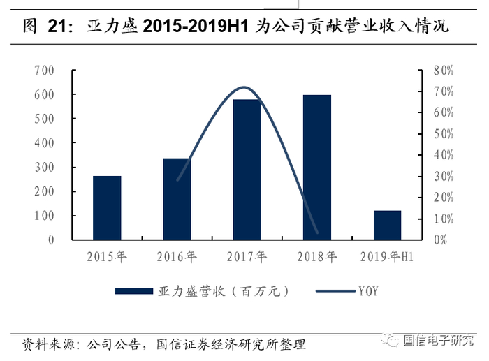 亚力盛是大客户测试线产品的供应商,并可拓展信维在汽车电子领域布局。亚力盛为富士康供应移动终端产品测试线,间接成为大客户的供应商,而消费电子连接线获得苹果MFI认证,这些都有助于信维为公司提供更加全面服务,拓展业务领域;借助亚力盛在汽车电子线束领域优势,能帮助信维打开汽车电子市场。