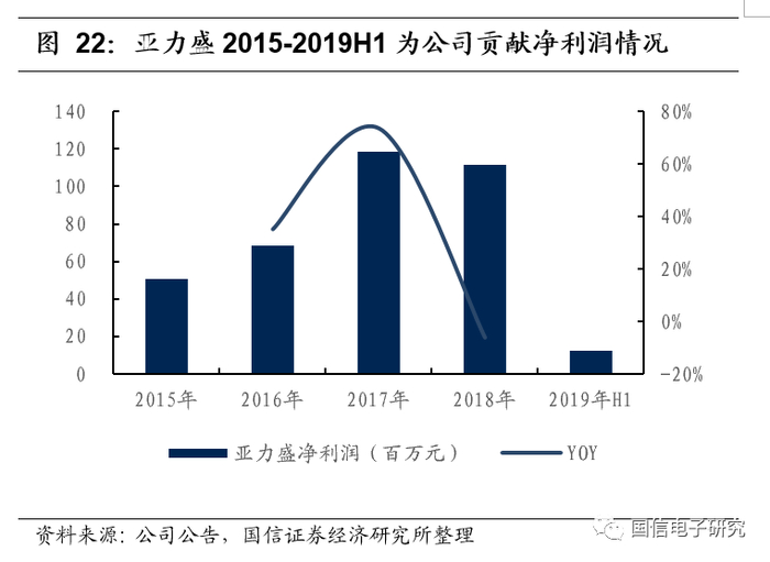 整合助力公司、亚力盛高速增长。亚力盛承诺2015年、2016年、2017年归母净利润分别不低于4500、5860、7620万元,实际2015-2016年实现净利润5050万元、6827万元,均超出业绩承诺。2017年上半年实现净利润5739亿元,相比去年同期增长108%,远超往年增速(不考虑2015年并表影响)。公司在消费电子领域的客户资源与亚力盛在工业、汽车等领域优势实现优势互补、资源整合、相互促进,从而彼此均可实现高速增长。其中lightning连接线公司已经成功进入大客户供应链,成为立讯精密和歌尔声学的上游供应商,为其提供充电接头与耳机接头。