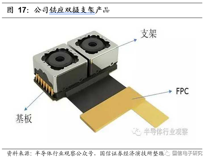 基于射频EMI/EMC等方面的理解能力,以及自身精密注塑制造能力,公司不断拓展在大客户体系内的精密结构件的品类。核心业务产品如摄像头产品内部结构件(例如双摄支架)业务已经进入大客户的供应链,目前也开始切入前置摄像头支架,前置3D摄像头模组内部支架等业务。通过产业链了解,公司在精密注塑结构件业务方面,竞争力持续提升,料号预计从2017年的30多个,提升至2018年的80多个,2019年预计超过100个料号。