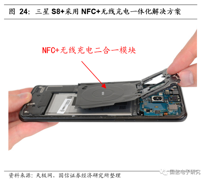 信维推出NFC+无线充电一体化解决方案,成为国际大客户核心供应商之一。公司基于在无线充电与NFC领域的积累,设计出无线充电+NFC一体化模块,节省空间的同时,还能从源头有效解决二者间电磁干扰问题。一体化解决方案能够为客户提供一站式服务,为客户提供更好服务的同时也提升了单机价值,目前供给三星的一体化方案单价高达4美元,远高于单个模块的价值。
