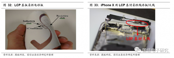 LCP即液晶聚合物,具有优异的耐热性与成型加工性能,且电磁损耗率低、密封性好,是5G时代替代PI制作FPC的最佳选择之一。使用LCP材料制造成多层结构(金属层,线路层,金属层)可以代替同轴线缆,并且LCP材质也可以注塑成型,采用LDS工艺来实现天线功能。iPhone X采用LCP基材的天线,不仅提高了手机集成度,更是对5G时代射频天线基材和射频信号小体积传输两项技术的预演。