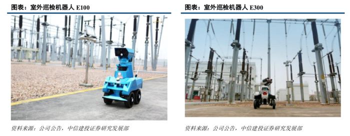 公司自主研发的室外巡检机器人E100主要应用于电力变电站,2018年下半年,公司推出小型化室外巡检机器人产品E300,采用了更先进的3D定位与构图技术以及更灵活的云台技术,激光数据传输性能大幅度提升,产品体积、重量大幅缩减,有效延长了机器人续航时间,提升了运维效率。