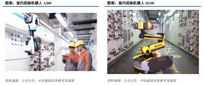 公司自主研发的室内巡检机器人A200主要应用于电力配电站,2018年,公司在A200的基础上推出小型化室内巡检机器人产品SA200,产品机身更加小巧、轻便;2019年,公司又研发推出室内轮式巡检机器人产品SI100,该产品无需搭建运行轨道,可实时自适应地图构建并自主行走,具备图像识别、局放检测、红外测温、噪声检测和SF6气体检测等核心功能。