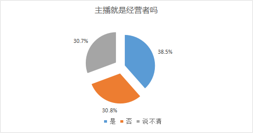 中国消费者协会近日发布的《直播电商购物消费者满意度在线调查报告》指出,38.5%的消费者认为主播就是经营者,30.8%的消费者认为主播不是经营者,还有30.7%的消费者表示并不清楚主播是什么角色。