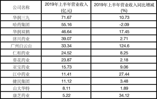 根据更早一些的数据,也就是这十二家药企已发布的2019年半年度报告。除了哈药集团,其他药企2019年上半年的营业收入都比上一年同期营业收入有所增长。