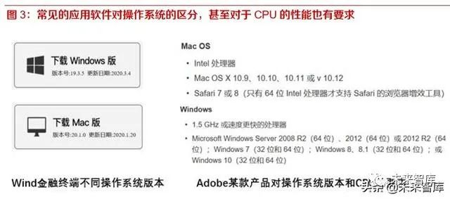 兼容并不是零成本的,往往是厂商之间的双向选择。以操作系统和 CPU 的兼容适配为例,引用龙 芯技术专家的观点“操作系统需要针对不同的主板和升级后的 CPU 进行磨合适配,而在 Wintel 体 系中可以实现不同主板及 CPU 的操作系统二进制兼容,其背后是 Wintel 体系统一的系统架构,包 括指令系统、地址空间布局、中断系统、多核互联架构、IO 接口规范等,需要 CPU、BIOS、桥片、 操作系统配合完成。”在应用软件方面,需要软件开发商针对操作系统的版本进行相应的调试和调 优,同款应用软件经常有多个版本以适应不同的操作系统。针对不同技术路线的软/硬件的兼容调 试,需要技术、资金、时间的投入,IT 厂商选择技术兼容伙伴的根本考量因素就是市场影响力,从 而避免无效的投入。兼容的双向选择,客观上阻碍了影响力较弱的基础软硬件企业步入 IT 产业圈。
