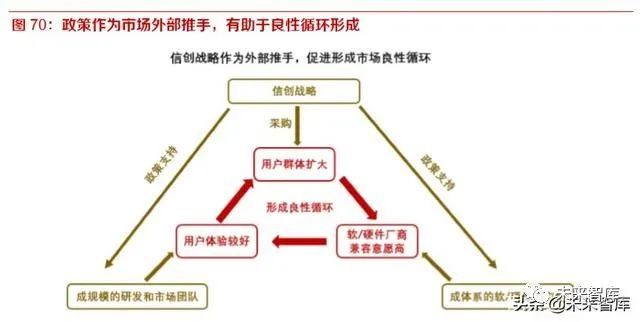 1)生态:国产基础软硬件体系基本可用,形成整体推进的局面。国产软件/硬件体系在 2015 年开 始进入“可用”阶段,2020 年在信创战略推动下有望向整体“好用”升级,最终有望达到市场良 性循环的状态。