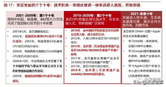 1.龙芯:技术源于中科院计算产业,单核性能提升,生态不断 完善