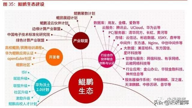 鲲鹏生态加速推进:华为聚焦于架构和并发,提供算力;硬件开放、软件开源、支持迁移和生态伙 伴共建生态。在华为开发者大会 2020(Cloud)上,华为宣布“沃土计划 2.0” ,将在 2020 年投 入 2 亿美元推动鲲鹏计算产业发展,并公布面向高校、初创企业、开发人员及合作伙伴的扶持细 则。华为携手腾讯游戏启动在鲲鹏领域的全面合作,并与麒麟软件、普华基础软件、统信软件、中 科院软件所共同宣布基于openEuler 的商用版本操作系统正式发布,加速鲲鹏生态在各行业落地。