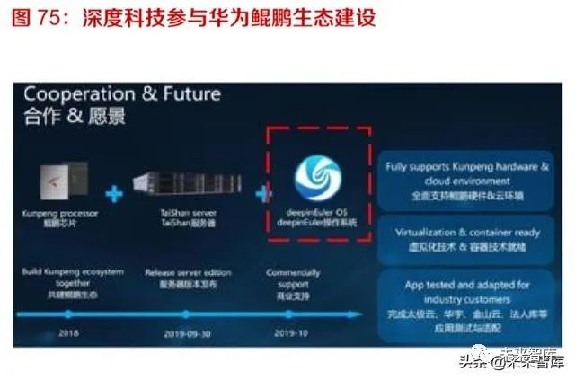 深度科技是华为重要开源生态合作伙伴:双方的合作从 2018 年就开始了,在华为 2019 全联接大 会上,华为宣布将开源服务器操作系统 EulerOS,深度科技将贡献 DDE 2.0 环境,与华为携手共 建 openEuler 社区。在 PC 端,2019 年 9 月,华为发布了搭载 Deepin 操作系统(桌面版)的 Magicbook Pro 锐龙版,是华为首款搭载国产操作系统的 PC 产品。