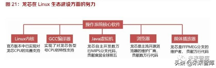 PC 端的生态建设:龙芯 CPU 已经支持主流的整机、操作系统、办公软件、浏览器、输入法和部 分设计工具等常见软硬件,覆盖了基本的办公需求。