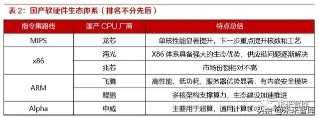 1)软/硬件生态基础不完善。国产 CPU 很长一段时间在性能上无法和 Intel 系列竞争;应用软件更 是缺乏对国产操作系统的兼容;