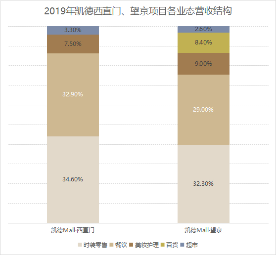 从造血能力来看,与CRCT所有项目的总营收结构相似,2019年两个项目时装零售、餐饮业态的营收所占比重均超60%。