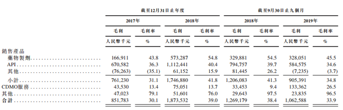 从业务收入占比来看,公司一半以上收入来自肝素API业务,2017年-2018年及2019年前九月,收入占比分别为65.3%、57.3%及54%。药物制剂则为公司第二大收入来源,同期占比分别为13.5%、21.8%及23%。