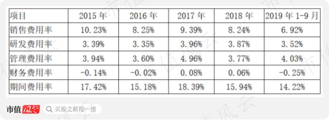 具体来看,销售费用率总体呈下降趋势,从15年的10.23%下降至19年前三季度的6.92%,这符合规模效应的原则。只是2017年销售费用率明显偏高,这个主要是当年公司加大了电商渠道的建设,相关的市场推广费和广告费大幅上升所致。