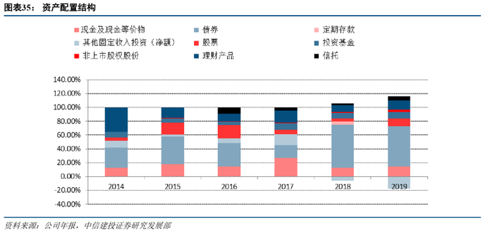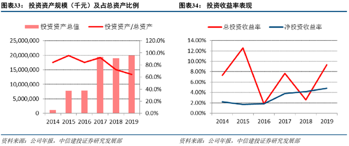 当前主要以委托模式开展,投资资产规模在2015 及2017年经历了较大幅度的增长,截至2019年年末,总投资资产199.3亿元,占总资产64.5%。资产配置结构上,固收类资产是主要投资方向,2019投资比例为42.4%,以债券投资为主,权益投资相对头部险企比例较高,合计23.65%,其中非上市股权3.2%,股票和投资基金占比合计20.4%。2019年未年化的净投资收益率为4.8%,总投资收益率为9.3%。