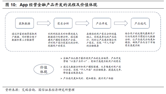App经营未改变零售银行金融本质,但重构了新的生态逻辑:(1)突破了时间和空间限制,服务边界扩大。并且App经营提高了服务长尾客户的价值。(2)催生零售银行对产品和服务进行深层次的调整,从“以产品为中心”迭代至“以用户为中心”。(3)从“卖方市场”向“买方市场”转变,客户有了更多的主动选择权。(4)经营全面数字化、智能化。