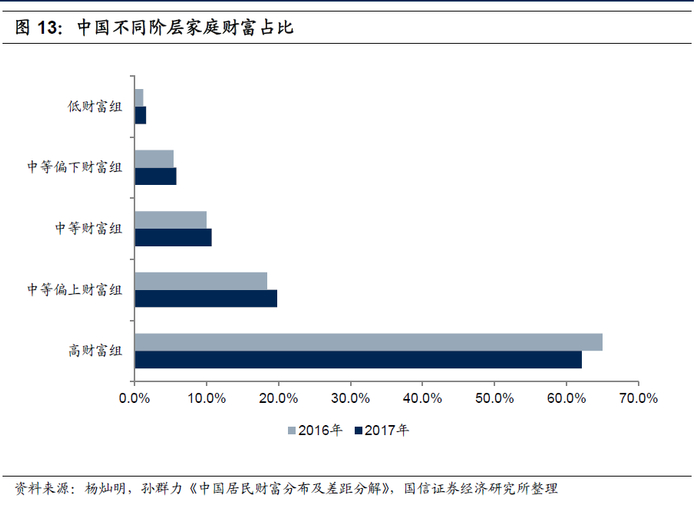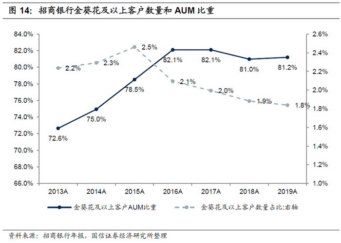 传统零售银行主要通过物理网点、客户经理来触达客户,这种模式成本较高,加上信息不对称等问题,银行服务长尾客户的效益比偏低。同时,居民财富集中在少数人手中,根据杨灿明和孙群力于2019年发表的《中国居民财富分布及差距分解——基于中国居民收入与财富调查的数据分析》显示,在2017年拥有财富最多的20%家庭其财富占总财富的比重为62%,而拥有财富最少的20%的家庭其财富占总财富的比重仅为1.2%,因此过去商业银行将主要精力放在了能带来高额利润的高净值客户身上,招商银行管理的金葵花及以上客户数量占比不足2%,但管理的金葵花及以上客户零售AUM比重超过80%。