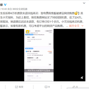 中国网财经4月22日讯(记者 李静)近日,英国留学生小文通过社交媒体平台爆料称:自己在携程网先后五次订购回国机票,却因疫情影响遭航空公司退票,然而退票将近一个月仍未收到退款;当致电携程客服,表示上述5次订票合计花费人民币4万元,再不退款就没有钱再订机票了,携程客服却回复称,航空公司没有给到最终结果,“现在只能等”;如果要重新订票,可以考虑用携程平台的“网贷产品”购票。