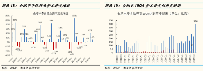 2020年台积电资本性支出或再创历史新高。台积电作为全球最大的晶圆代工制造厂,其每年的资本开支力度是行业的风向标。2019年,台积电资本性开支投入1072亿元,创历史新高,同比增长49%,预计2020年资本性支出将达到1120亿元,同比增长4.4%,继续创历史新高。