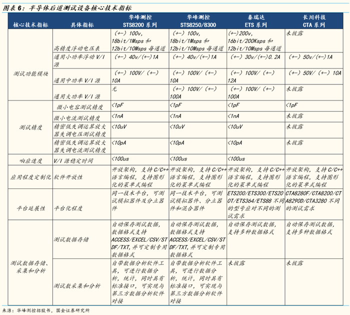 华峰测控和长川科技在后道测试设备领域具有一定的竞争力。