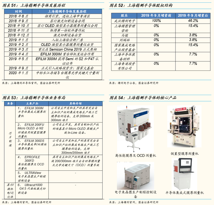 (2)上海睿励:成立于 2005年 6月,专注集成电路工艺检测设备已耕耘 14余年。目前拥有的主要产品包括光学检测设备、硅片厚度及翘曲测量设备及子公司宏观缺陷检测设备等。上海睿励自主研发的 12 英寸光学测量设备 TFX3000系列产品,已应用在 28纳米芯片生产线并在进行 14纳米工艺验证,在 3D存储芯片上达到 64层的检测能力。产品目前已成功进入世界领先芯片客户 (三星)3D闪存芯片生产线,并取得 7台次重复订单。