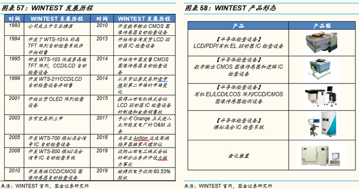 WINTEST成立28年,核心产品包括LCD/PDP/有机EL驱动器IC检查设备、数字输出CMOS图像传感器和逻辑IC检查设备、有机EL/LCD/LCOS阵列/CCD/CMOS图像传感器检测设备、模拟混合IC检查系统和老化装置。根据官网,2018~2019年,WINTEST收入2815万元、2835万元,净利润分别为-1884万元和-2227万元。