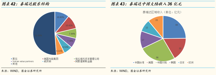 (2)股东结构:黑石集团和美国先锋集团均为泰瑞达和科磊半导体的前两大股东,黑石集团占泰瑞达股本10.83%,美国先锋集团占泰瑞达股本10.42%。