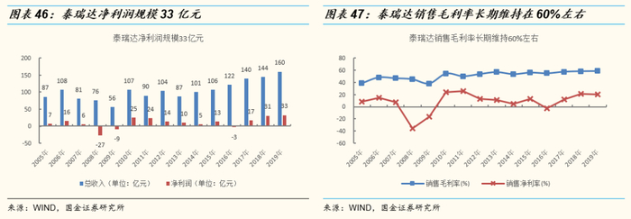 财务指标:泰瑞达净利润规模超过30亿元,毛利率长期维持60%左右