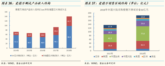 (2)区域结构:按区域划分,爱德万最大的收入来源为中国台湾地区,主要为台积电的采购,2018年规模为77亿元,占爱德万总收入比重41%,中国大陆2018年采购规模为30亿元,占爱德万收入比重16%。
