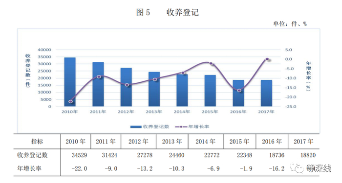相关数据显示,官方渠道的收养登记数量总体呈下降趋势。