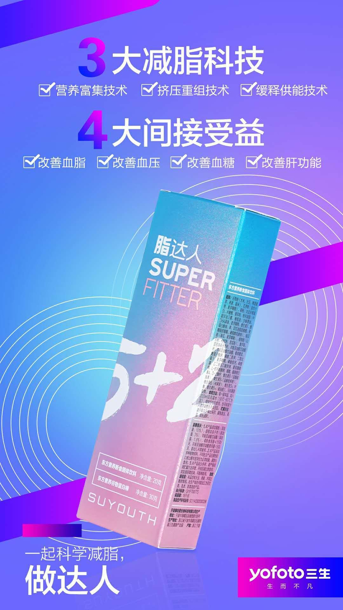为帮助人们如何科学减脂,三生(中国)携手中国食品发酵工业研究院及功能主食创制与慢病营养干预北京市重点实验室的专家团队,以《中国超重/肥胖医学营养治疗专家共识(2016 年版)》为产品研发理论基础,耗时5年,耗资1900万,共同研发了划时代的全新减脂产品——东方素养脂达人5+2,遵循世界卫生组织五大减脂黄金准则,摒弃“高糖高盐”、“人工色素防腐剂”等有害添加,采用更先进的前沿技术和更营养、天然的成分配方,通过“饮食干预+行为干预”的科学方式,以“限制热量+均衡营养”的医学营养减重思路,带来更安全可靠的减脂方法,从而打造全民健康减脂新时代。