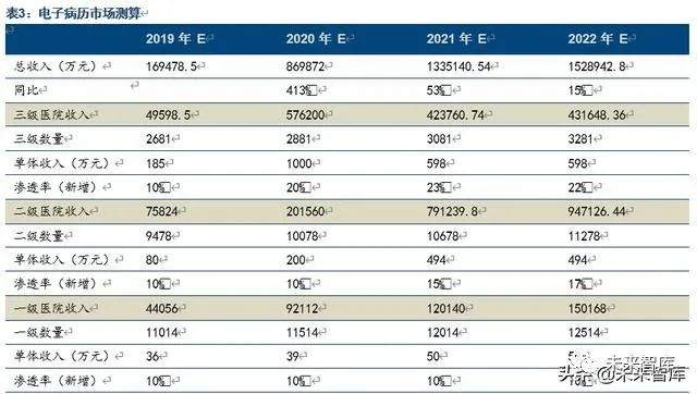 ①到 2022 年,我国电子病历三级医院渗透率预计将达到 90%左右,二级医院渗透率超过 60%,一级医院超过 40%;