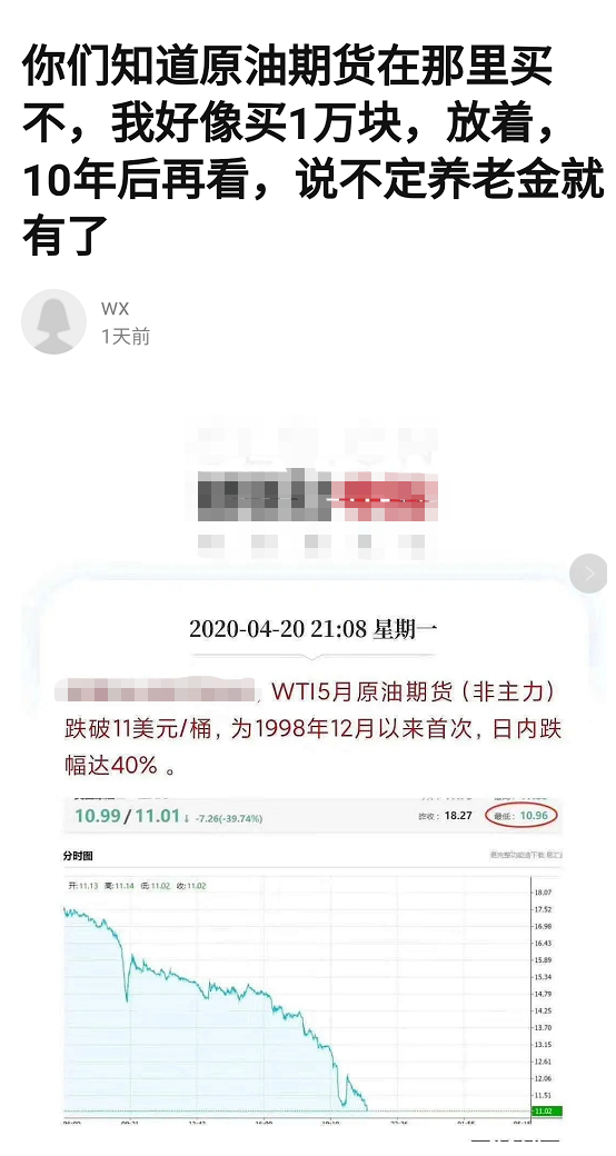 甚至有投资者认为这和投资股票类似,根本不清楚到期换月的相关规则,甚至打算长期持有。某论坛用户在油价大跌时发贴询问在哪里可以投资原油,打算长期持有作为自己的养老金。