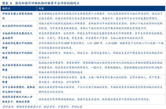 (一)国内和国外评级机构对融资平台评价的相同点