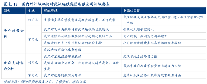 (二)武汉地铁集团:国内外评级机构评价一致,但侧重点有所不同