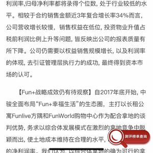 克而瑞发布报告认为,以综合体拿地的确为可行的拿地策略, 然而公司对Fun+购物中心的租金收入过份乐观。公司预期在2020-2023年开业的11家购物中心, 商场单体建筑面积仅为56,000平方米-94,000平方米, 相对于主流购物中心面积少20%-50%。体量较少的购物中心, 虽然对开发商资金压力较轻, 但人流动线设计较局限, 业态及租金增长皆有天花板, 难以成为当区人流聚集的商业中心。中骏规划的45亿元租金收入, 隐含平均每个购物中心贡献4500万元的收入, 此等规模的收入更常见于10万平以上的成熟购物中心。其余11个购物中心都需要最少3-5年时间发展才能达到3000万元以上的租金规模, 而且基于目前公司开业的商场较少,短期难以证明公司有能力将多个商场运营至一流水平。