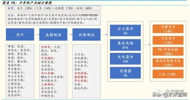 半导体检测设备采购需求直接取决于下游半导体厂商的资本开支,而半导 体厂商的资本开支直接依赖下游终端需求。终端需求里边,消费电子占 14%、汽车电子占 12%、PC/平板电脑占 30%、通信及智能手机占 32%、工 业占 14%。
